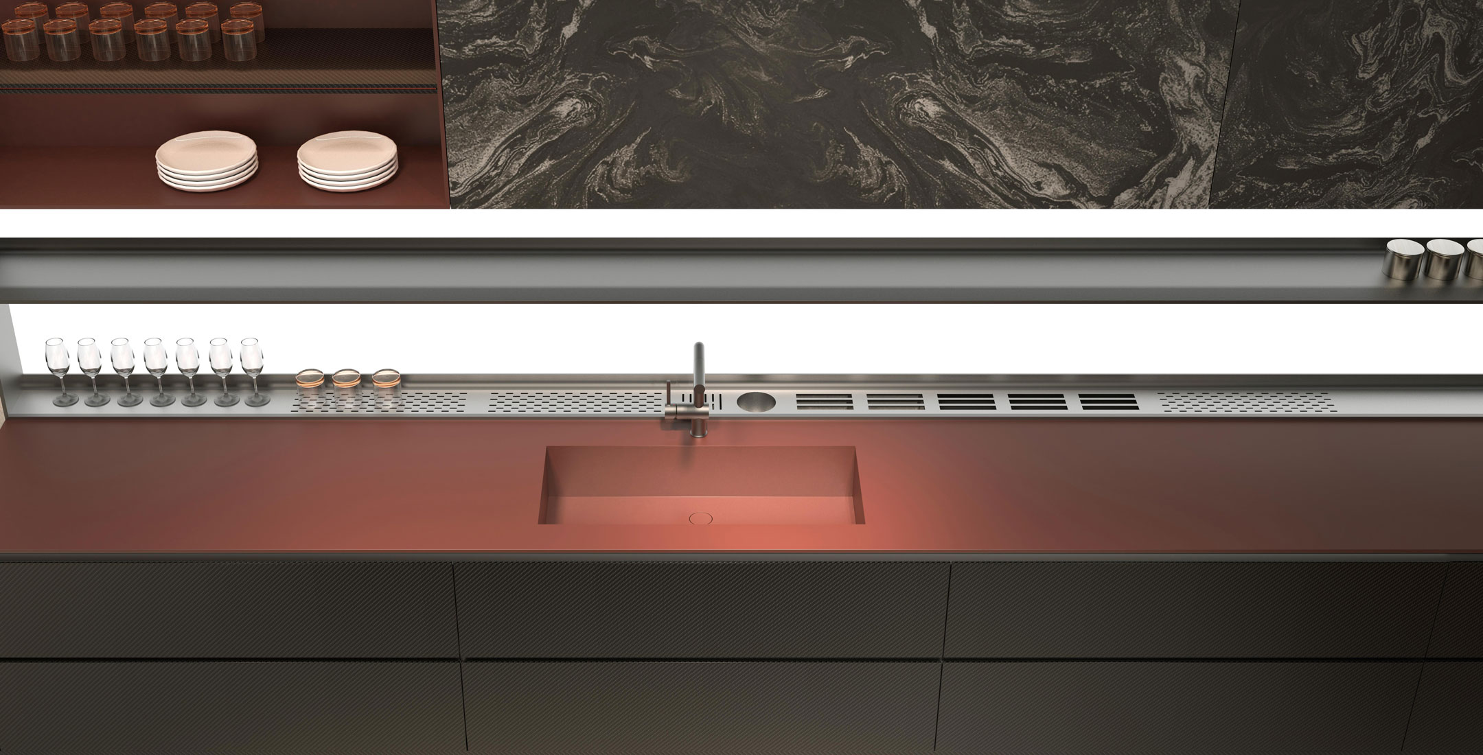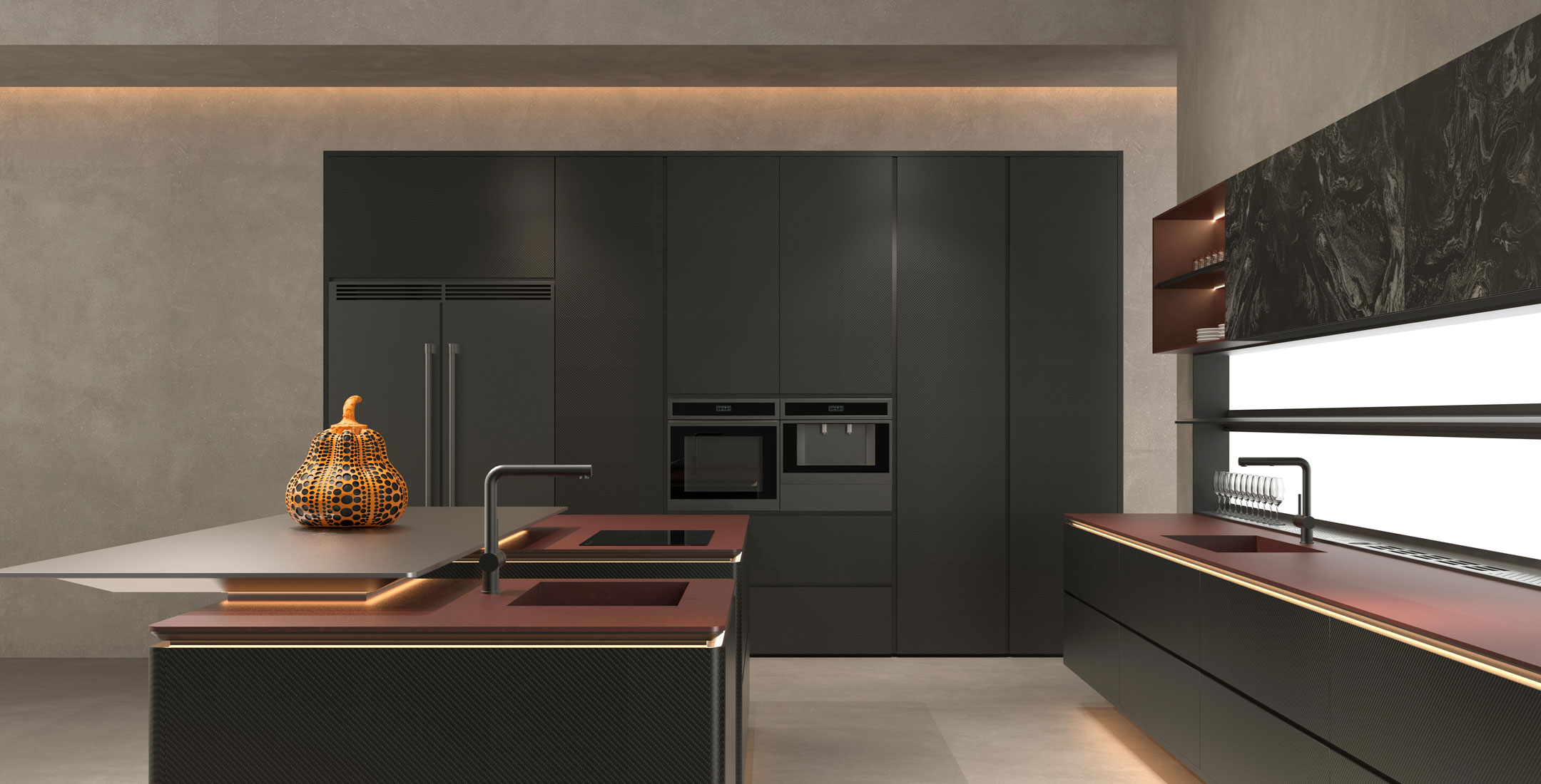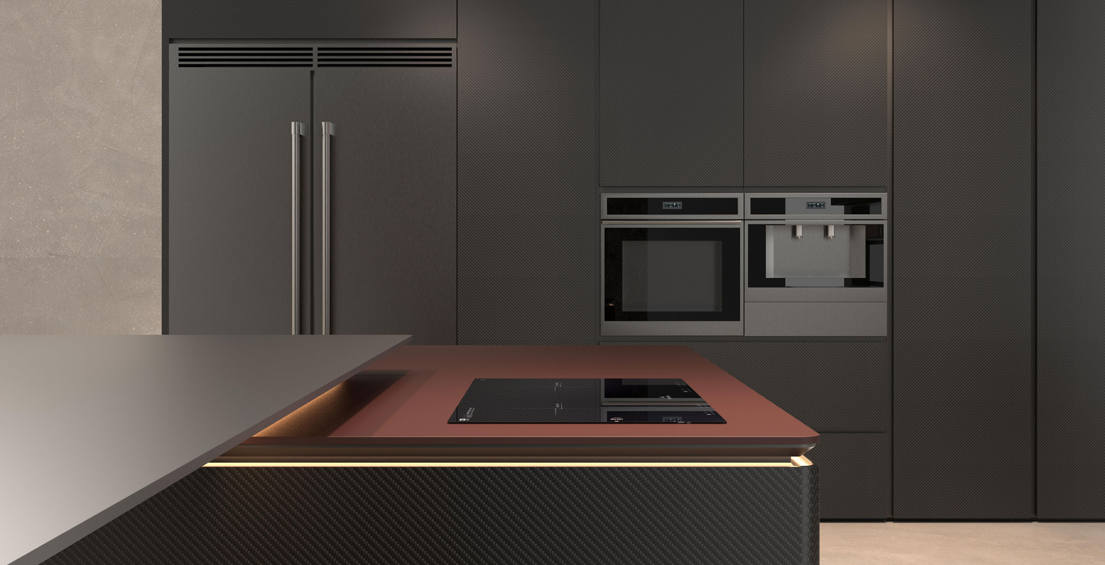 厨柜金属与木质结合的一体化集成方案,是理性与温情的完美邂逅。它以金属的冷冽勾勒出空间的骨骼——不锈钢或拉丝铝材用于台面、收边与层架,赋予厨房利落的现代感与卓越的耐用性;再以木质的温润注入生活的温度——橡木、胡桃木或岩板木纹门板包裹着储物区域,让触感与视觉都回归自然的亲切。两种材质在设计中相互咬合、彼此呼应:金属的硬朗与木质的柔和形成微妙的对比,却又在统一的色调与比例中达成和谐。结构上,一体化集成将吊柜、地柜、高柜与嵌入式电器无缝衔接,隐藏式拉手、无踢脚线设计与严丝合缝的收边工艺,让整体视觉干净利落。这种方案不仅兼顾了金属的防潮、易清洁与木质的防刮、耐冲击,更在美学上实现了刚柔并济的平衡——让厨房这个充满烟火气的地方,既能承载日常烹饪的繁琐,又能以高级的质感成为家中一道静谧的风景。