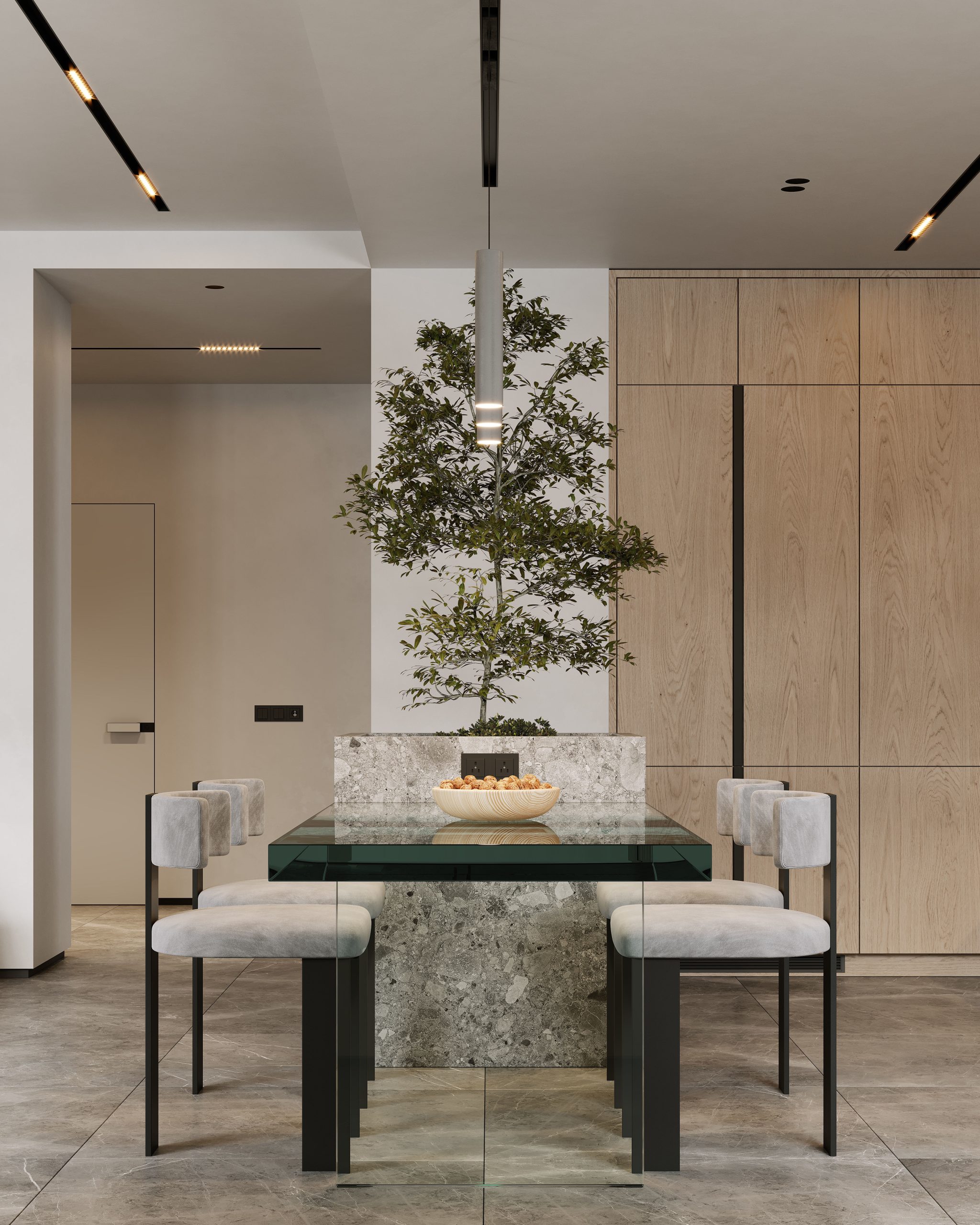 现代极简风格,是一种以退为进的生活哲学。它摒弃冗余的装饰语言,用最精炼的线条勾勒出空间的骨架,让建筑本身的结构之美得以显现。在色调上,它以中性色为基底,让黑白灰与自然的木色交织出沉静的韵律;在材质上,它追求触感的真实——光洁的混凝土、温润的橡木、冷冽的金属,每一种都以最诚实的姿态呈现。光线在这里被精心设计,自然光穿过偌大的落地窗,在留白的墙面上缓缓游走,成为空间中流动的艺术品。现代极简从不拒绝温度,而是用克制的手法,让每一件精心挑选的家具都成为空间的焦点,让居住者在纯粹与宁静之中,重新找回内心的秩序与从容。